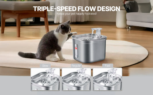 FO5 Pet Water Fountain Stainless Steel,74oz/2.2L Automatic Water Dispenser with Water Level, Replacement Filter Kit and Silicone Mat Suitable for Cat, Dogs