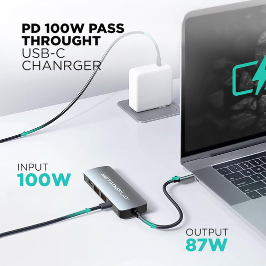 MetaDisplay MD Hub USB C Hub with 100W PD Charging, Type C to HDMI 4K 30Hz Adapter, 2 USB-A Data Ports and Type-C port, Multiport Adapter Compatible with all Laptop and Tablets.